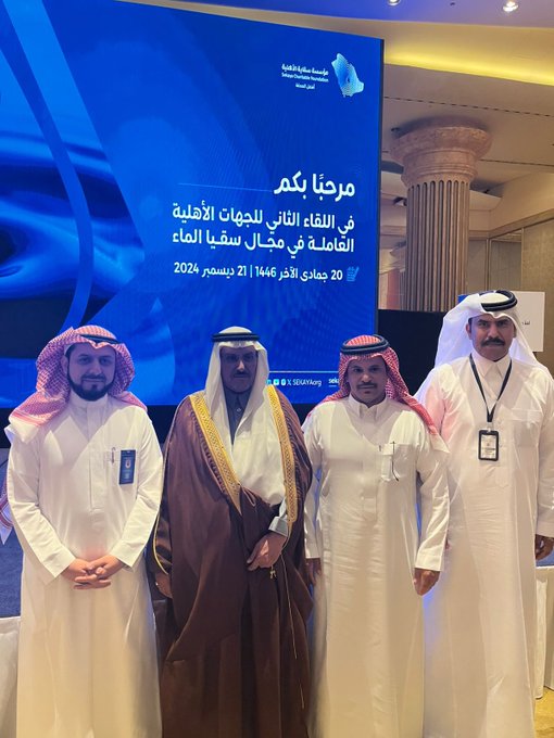 ممثلي جمعية البر الخيرية بحبونا في اللقاء الثاني للجهات الأهليه العاملة في مجال سقيا الماء. مع وكيل وزارة البيئة والمياه والزراعه للمياه د / عبدالعزيز محارب الشيباني والمدير التنفيذي لمؤسسة سقايه الأهلية م / عبدالرحمن الرشود