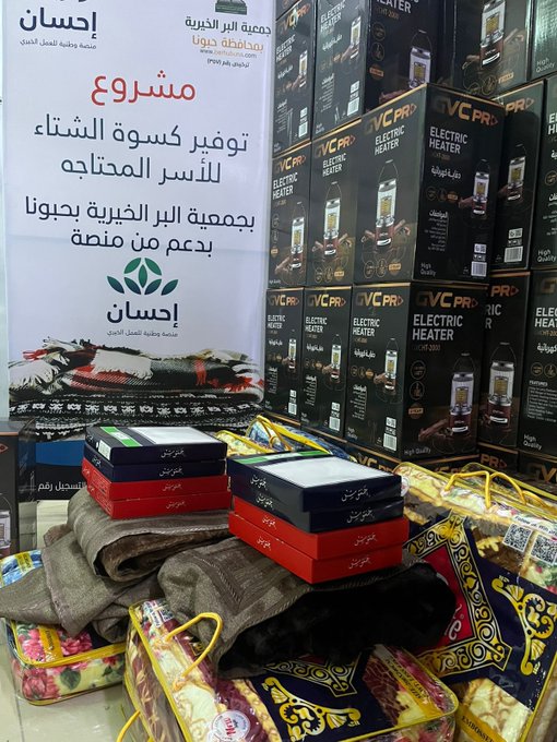 جمعية البر الخيرية بحبونا تقوم بتوزيع كسوة الشتاء على الاسر المحتاجة بدعم من #منصة_إحسان للعمل الخيري. نسأل الله ان يعظِّم لهم الأجر ويجعل ذلك في ميزان حسناتهم